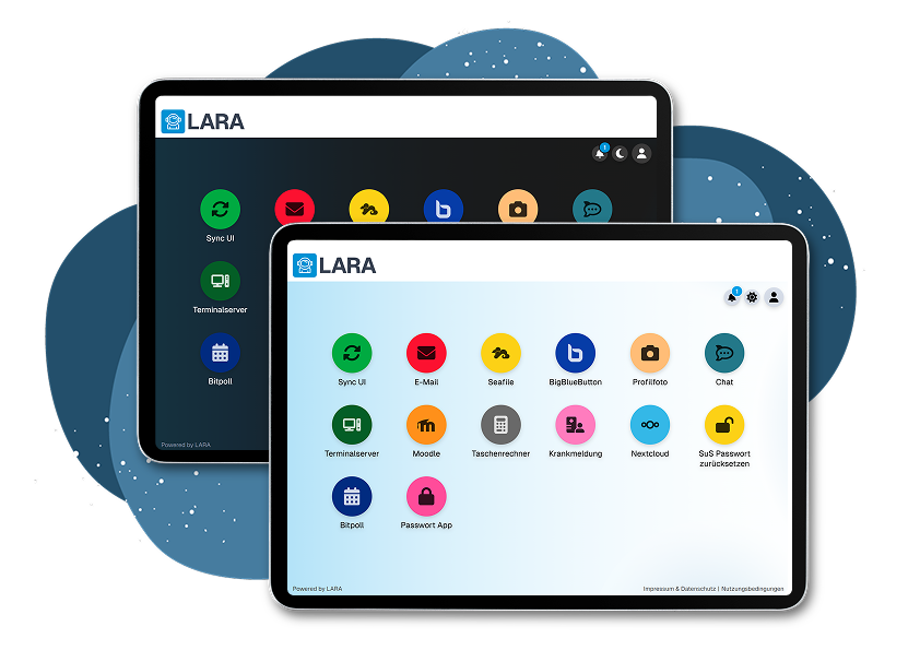 Das LARA Portal ist die zentrale Anlaufstelle für alle Lehrkräfte, Schülerinnen und Schüler bis hin zu Eltern. Über die moderne, webbasierte Landingpage sind alle relevanten schulischen Dienste – wie Moodle, WebUntis, itslearning oder andere angebundene Systeme – übersichtlich gebündelt und sicher erreichbar. Dank Single Sign-On (SSO) genügt eine einzige Anmeldung, um mit nur einem Klick auf alle Anwendungen zuzugreifen. Ob im Unterricht, im Büro oder von zu Hause: Das Portal ermöglicht komfortables Arbeiten von überall und auf jedem Endgerät.